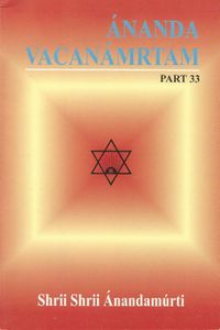 Ánanda Vacanámrtam Part 33 is a book of assorted spiritual discourses by Shrii Shrii Anandamurti. The discourses were delivered in India, mostly from 1964-1969. At the end of the book, there is one appendix with a date in 1989.[1]