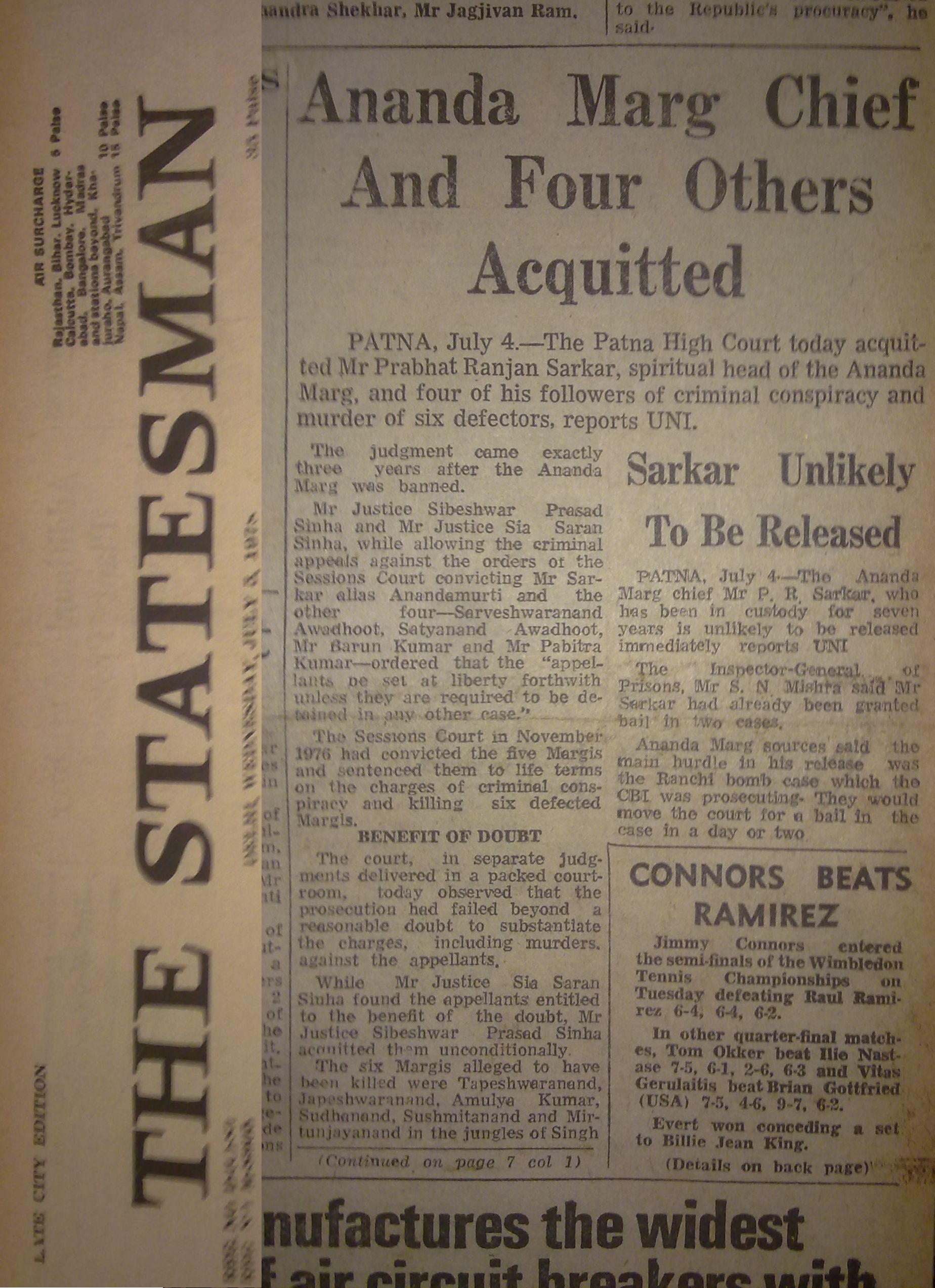 Report of Sarkar's acquittal in The Statesman on 1978 July 5.
