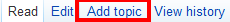 | current | 16:00, 31 October 2013 | 230 × 22 (2 KB) | T12 (talk | contribs) | Screenshot of Sarkarverse depicting "Add topic" link in a page. |